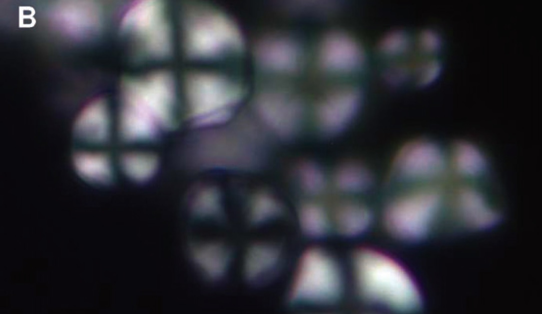 The team was shocked to find a packed field shown top left… Which became stranger under polarized light shown to the right…