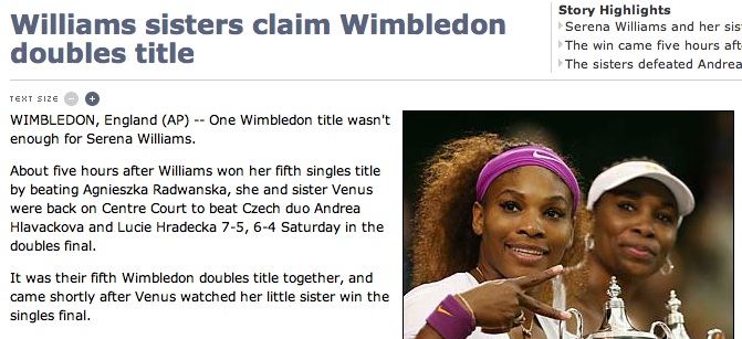 The Williams sisters put yet another Wimbledon doubles tittle into their trophy case over the weekend. This, just hours after Serena had won the singles competition. Pretty impressive.