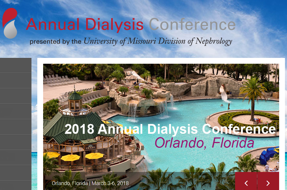 The Annual Dialysis Conference 2018 that will be held in Orlando, FL March 3-6, 2018.