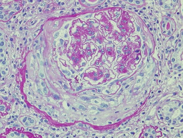 Crescents always makes us wonder about the presence of underlying immune-mediated disorders. We investigate the patient extensively with antibody profiling, complement work up and other battery of tests. Sometimes a crescent may appear unexpectedly in the biopsy of a diabetic patient. A diabetic patient can have ANCA vasculitis after all. If the clinical picture is suggestive of immune disorder, the work up for these diseases will help in arriving at the diagnosis. Immunofluorescence and electron microscopy are also crucial in this regard.