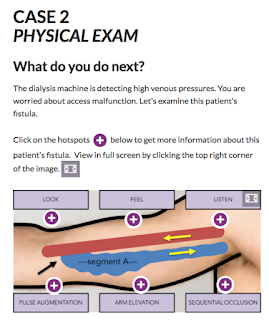 - 5 simulated cases of access complications that are structured step-by-step from the point of patient presentation at the hemodialysis unit through physical examination, diagnostic tests, and intervention in a fun, thought provoking, and interactive manner