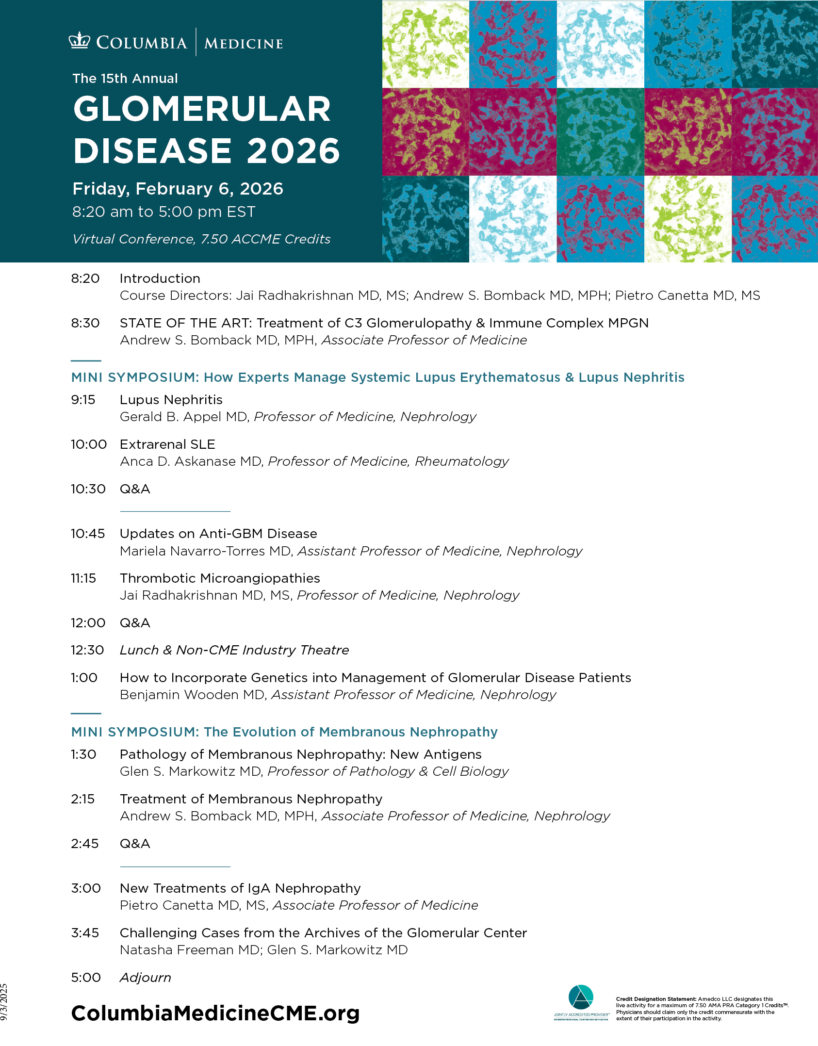 Program Overview: Program covers recent advances in the diagnosis and management of glomerular disease in a one-day course